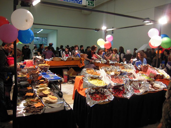 Proseguendo oltre abbiamo trovato due stanze buie e cavernose riservate ai giochi da tavolo: dai giochi di carte (Magic su tutti) ai classici Risiko, Monopoli e tutti gli altri (anche il Subbuteo). Insomma dopo la lunga camminata era anche un buon modo per rilassarsi in tranquillità. Chi invece avesse avuto uno spirito meno nerd e uno stomaco più brontolante poteva uscire all’aperto e comprare del ramen istantaneo da consumare seduti sul prato mentre un sottofondo di musica metal (proveniente da uno degli stand) accompagnava le prodezze con la spada di un gruppo/associazione in costumi medioevaleggianti. Chi all’aperto invece aveva ancora voglia di continuare a muoversi c’erano altri giochi simpatici cui dedicarsi, oltre a potersele dare di santa ragione con delle spade di gommapiuma.