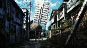 Perchè ho scelto Coppelion, per iniziare a parlarvi delle serie autunnali? È presto detto: il primo motivo è legato al fatto che ogni settimana potete trovare l’episodio sottotitolato in italiano sul sito della Popcorn Tv (la mia diffidenza verso i sottotitoli in italiano è nota, ma non ho avuto niente in particolare da ridire sulle traduzioni effettuate); il secondo è legato al fatto, che, causa la particolare struttura di questo anime preferisco parlarvene adesso che si è visto poco piuttosto che rimandare e rischiare, involontariamente, di guastarne la visione presentando una visione sì più completa, ma meno affascinata. Perchè posso dire che Coppelion, dai tre episodi per ora trasmessi, mi sta affascinando. Coppelion nasce come manga, pubblicato su Monthly Young Magazine, rivista di tipo seinen della casa editrice Kodansha (stessa rivista su cui esce xxxHolic e Psychometrer), dal 2008: del manga esistono attualmente 19 volumi, ed è probabile che l’idea di animarlo fosse covata da diverso tempo, ma si è dovuto attendere l’arrivo di Shingo Suzuki e della GoHands. Il regista, che ha già firmato K e Mardock Scramble è forse uno dei pochi che avrebbe potuto adattare pienamente in versione animata il paesaggistico Coppelion.