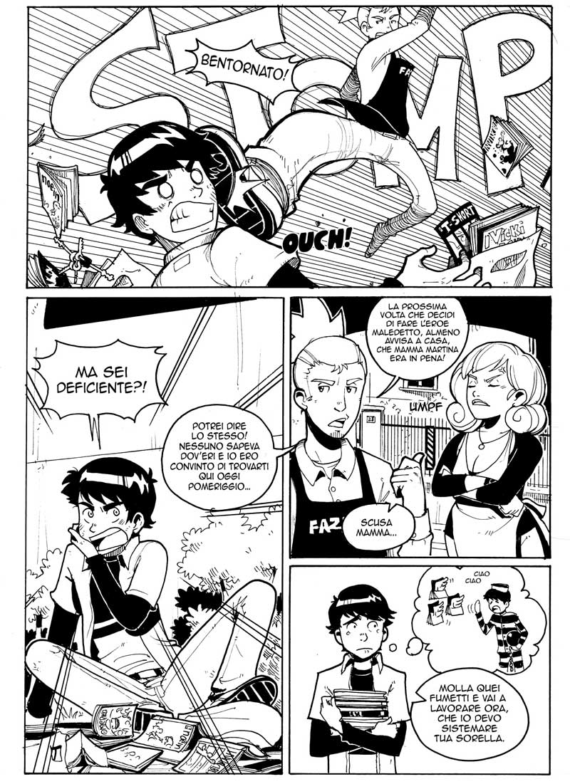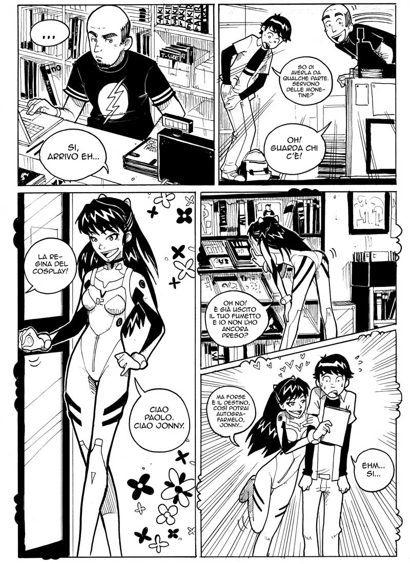 Tornando a “It’s Fantstic!”, il progetto iniziale era di un volume di 120 pagine ed è stato deciso di dividerlo in tre capitoli, per rendere più facile la distribuzione. Insomma, la storia di Jonny e soci non è affatto conclusa. Anzi, vi annuncio fin d’ora che il secondo volume riserverà non poche sorprese, prima fra tutte l’entrata in scena di Valentina, la fascinosa cosplayer di cui è innamorato il nostro Jonny!”