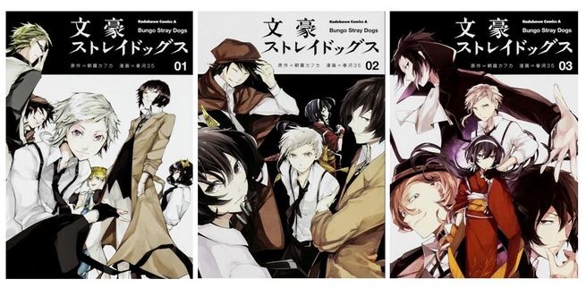 Nel terzo volume di Bungō Stray Dogs che la Kadokawa ha pubblicato il 4 Dicembre sono stati introdotti una serie di autori non giapponesi, come Fyodor Dostoyevsky, autore di Delitto e Castigo e I fratelli Karamazov, e Agatha Christie, autrice di Assassinio sull’Orient Express.