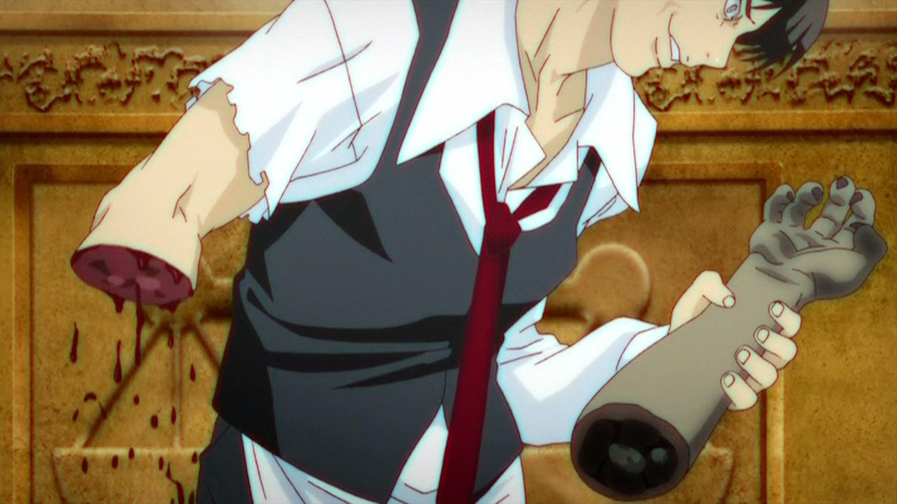Commento: in quindici anni che seguo anime, mai mi sono trovato di fronte ad una puntata d’apertura tanto originale ma equamente ben costruita, pensata non per stupire ad ogni costo ma proprio per introdurre il main character con sfoggio di classe: sembra quasi paradossale, me ne rendo conto, ma per 5 minuti sono stato letteralmente sul punto di chiudere tutto perché convinto di aver scaricato un’altra cosa! Cosa fare allora? Pausa. Un bicchiere di aranciata, uno spuntino rapido e nuovamente sul Mac con il mio fidato Nelson (vocabolario giapponese) e la concentrazione al massimo per capire bene che diavolo stava succedendo in… un talk show?! Eh già, un noiosissimo e prevedibilissimo talk show (“La bilancia celeste”, un nome un programma ^^) che sembrava veramente appena uscito dalla fascia oraria mattutina della NHK, quando le casalinghe preparano il pranzo ascoltando i dibattiti più frivoli e divertendosi per le gag (tristissime) dei comici in studio. Sempre più a bocca aperta per cosa diavolo si era inventato Shinbo Akiyuki per questa première, tengo duro fino nel finale e vengo ampiamente ripagato: questa serie è pura gioia grafica plasmata da un genio in cabina di regia che manda alle ortiche l’inizio del manga omonimo regalandoci il suo “Vampire Bund”. E di questo gliene dobbiamo essere ampiamente grati: niente OP ed una ED che scorre via su una Mina Tepes in lingerie: dopo averci fatto eccitare con l’arrivo dei vampiri in terra, la canzone ci regala altri bollori ^^ Non male davvero…