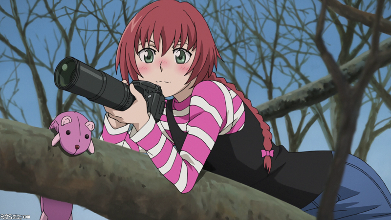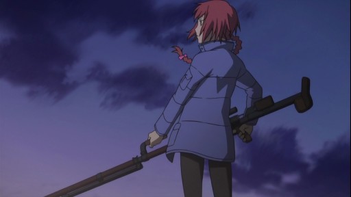 - La presenza di elementi tipicamente anime del genere shojo majokko: la protagonista Suo “evoca” letteralmente il suo fucile (che potere è evocare un fucile, trall’altro…) in una scena che passi la prima volta in cui viene mostrata, nella quale va notato un particolare… ma secondo me è stato superfluo riproporla come non era necessario che durante la cinematica fosse nuda come una guerriera sailor.