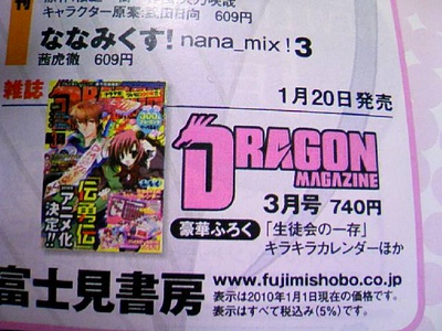Stavolta tocca, come da titolo, a densetsu no yusha no densetsu, light novel fantasy uscita dalla penna di Kagami Takaya. Ad essere sinceri sinceri, non si parla di anime in nessuno degli annunci ufficiali, ma si sa che l’anime ci sarà (i bene informati sono sicuri, quindi ci crediamo anche noi) e che l’annuncio ufficiale si farà il 20 gennaio. L’anime si farà nel 2010, anche se per ora è oscuro se si tratterà di un anime primaverile, estivo o autunnale, e sarà accompagnato da una massiccia campagna di merchandise. Pare quindi che si punti molto su questo progetto, quindi è anche comprensibile che la tensione si mantenga alta.