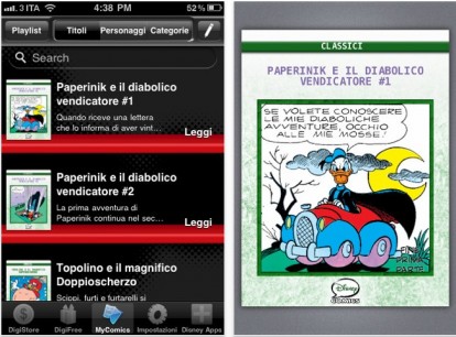 Lunedi 3 Ottobre a Milano è stato infatti presentata al panorama italiano la nuova Disney Comic App, disponibile fin da subito sull’ App Store Disney Comics. Questa nuova applicazione, scaricabile gratuitamente, dà la possibilità di comprare le migliori storie Disney scegliendo da un catalalogo che al momento offre più di 120 titoli e che comprende tutti i grandi classici della storia Disneyana. Le offerte saranno divise sia in storie singole che in pacchetti contenenti più avventure dello stessa personaggio e , al momento del lancio, il pubblico potrà scegliere tra svariati titoli con protagonisti Paperino, Zio Paperone, Paperoga, Indiana Pipps, Paperino Paperotto.