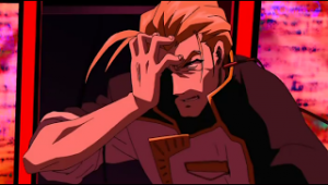 - Bernard Firestar, un giornalista arrivato dalla Terra per tenere d’occhio Alchemy (l’organizzazione segreta che mira a un’esistenza superiore guidata dal cattivo) è al centro di alcune scene assolutamente insensate. Primo, durante l’attacco di un Ghoul approfitta della commozione per inserire un programma nell’androide Kotoko: questi dopo la riparazione non viene neppure sottoposto a una scansione e il giornalista sfrutta quindi continuamente l’androide come piattaforma per infilarsi nel sistema informatico della stazione. Poi, non pago di ciò, e conscio del fatto di essere tenuto sott’occhio inganna la protagonista Misaki e la porta sul pianeta costantemente vigilato dove appaiono i Ghoul (e dove anni prima morì il padre della protagonista); questi riesce a ritornare dopo aver rubato alcuni dati preziosissimi, ma dato che il cattivo lo sta usando a sua insaputa per i suoi scopi viene lasciato libero di passeggiare senza essere messo agli arresti. Geniale. Dato che il cattivo ha un piano per lui, tutti i personaggi non prendono iniziativa contro di lui. Geniale. Che goduria quando muore.