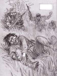 Al contrario del fumetto che la maggior parte di noi è abituato a leggere, DONG XOAI, Vietnam 1965 sembra un infinito sketchbook, uno storyboard per qualche film, composto da soli disegni a matita; nessun colore se non le tonalità di grigio e nero. Leggendolo viene quasi da chiedersi quanto tempo abbia passato Kubert nel disegnarlo… mi spiego: alla prima occhiata i disegni sembrano delle bozze, niente di più, però poi, col passare delle pagine, ci si rende conto che nulla è lasciato al caso; ogni linea, ogni dettaglio è messo lì per una ragione ben precisa.