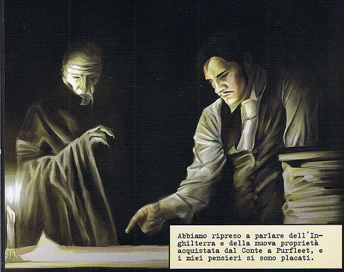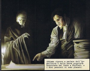 Una cosa che ho trovato molto interessante è stata la prima parte, cioè l’utilizzo della del capitolo introduttivo. Voglio citare le parole della prefazione a cura di Marco Ricompensa: “…La coppia fa un lavoro di ricostruzione certosino del Dracula di Stoker, recuperando anche il capitolo introduttivo ambientato a Monaco di Baviera e che vede come protagonista un Jonathan Harker di passaggio fra Londra e la Transilvania, che venne espunto dal romanzo perché considerato troppo lungo.”