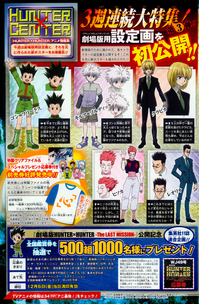 Hunter x Hunter di Yoshihiro Togashi torna al centro dell’attenzione per la sua seconda pellicola cinematografica, che debutterà nei cinema giapponesi il 27 Dicembre. Nel film compariranno svariati personaggi già noti agli appassionati di questo manga, alle prese con un nemico creato espressamente per il film: un misterioso hunter che ha intrapreso la strada dell’oscurità anni prima, in seguito a un particolare coinvolgimento del vecchio Netero nella vicenda. Una pellicola che esplorerà alcuni dei capitoli più oscuri della storia degli hunter, realizzata dallo studio Madhouse con la direzione di Keiichiro Kawaguchi (Sket Dance, Hayate no Gotoku!) e la sceneggiatura di Nobuaki Kishima (Slam Dunk, Eyeshield 21). La band folk/pop rock giapponese Yuzu ritorna a occuparsi delle sigle del film, dopo averne prodotte due per la serie regolare (Nagareboshi Kirari nella saga delle Formichimere; Reason nella saga di Greed Island e nel film Phantom Rouge). Eccovi un trailer della pellicola e i link per il primo, e il secondo messaggio pubblicitario.