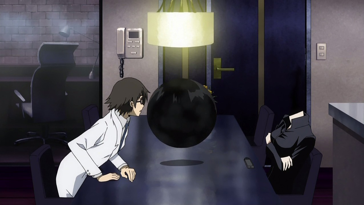 Commento: giudicare dalle apparenze spesso è un grave errore, ne cade vittima anche chi è abituato ad analizzare e “spaccare il capello” anche quando, forse, non è pratica necessaria. E’ quello che è capitato a me ed anche a chi abbia visto l’episodio fino alle ultime scene, quando la patina di normalità quasi banale per gli standard che settimanalmente crescono e migliorano senza remore viene spazzata via con violenza, con rabbia… quasi come a dire: “Ecco, guarda in faccia la verità e prova a capirci qualcosa, se sei capace”. Come la calda giornata dell’agosto 1945 ad Hiroshima venne sconvolta da un evento destinato a cambiare le sorti della Storia, così in questo 8° episodio l'”Enola Gay” chiamato “Studio Brains Base” sgancia la sua testata nucleare sulla storia (senza “s” maiuscola) rimescolando in maniera assolutamente imprevista le carte in tavola: alle spalle ci lasciamo la straniera che si offre di trovare oggetti smarriti (doppiata meravigliosamente, lasciatemelo dire), alle spalle ci lasciamo la semi love story fra Mikado ed Anri (decollerà mai?), alle spalle ci lasciamo il rapporto dicotomico fra Celty e Shinra che con i loro alti e bassi cercano di costruire una “relazione” basata sulla normalità nonostante nessun aspetto della loro vita sia ad essa riconducibile. Aspettate gli ultimi secondi e sarete ripagati con una sconcertante rivelazione… C’è solo una domanda alla quale provare a dare una risposta: visto e considerato che la testa di Celty non è dove sarebbe dovuta essere, a chi appartiene quella sotto formaldeide? Facile pensare che si tratti di un semplice head swapping ma… ricordate cosa ho scritto in apertura? E’ la puntata delle sorprese, attenzione alle conclusioni che potreste trarre…
