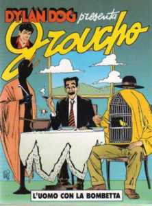 Per 8 anni l’assistente più assurdo di Londra è stato inserito in storie che oltrepassano i limiti della normalità, sfociando in racconti totalmente privi di ogni logica ma incredibilmente divertenti e talvolta anche suggestivi, come in “La cosa misteriosa che vive dietro il frigorifero” dove Groucho si trova a fare le veci del suo capo temporaneamente in vacanza, perciò gli tocca scoprire cosa attrae un gatto tanto da tenerlo bloccato a fissare dietro il frigorifero per tutto il giorno, arrivando ad una conclusione tanto strana quanto poetica. L’anno successivo invece lo vediamo alle prese con una ragazza che sembra essere creata appositamente per assecondare le sue battute, e tra le pagine di “Horrorpoppin'” viviamo con l’autore ciò che si prova quando mancano le idee per scrivere una storia normale. Il terzo numero, “L’uomo con la bombetta”, è un susseguirsi di fatti totalmente illogici trasformati in plausibili grazie alla comparsa di Magritte, il famoso pittore. In “Non urlate a quella porta” Groucho decide di ospitare i più disparati mostro espulsi dall’inferno, mettendo volti famosi nel panorama horror in situazione a loro non convenzionali, mentre in “Per chi suona il campanello” sarà lui ad andare in una casa infestata da scheletri e fantasmi che cantano sotto la doccia. Ma a rivolgersi al comico addetto alla preparazione del thè non sono solo mostri e affini, infatti in “Love story” una giovane ragazza gli chiede il suo aiuto per placare le liti tra i suoi genitori, ma il compito si rivelerà tutt’altro che semplice, ma probabilmente avrà preferito la suddetta cliente a quello che lo “assume” in “Il cavliere di sventura”, ovvero Odoacre Sinnutti, uno iettatore di quelli con la “i” maiuscola che a suo malgrado scoprirà ben presto che non è semplice abbattere lo spirito di Groucho. L’ultimo albo in cui chi ha suonato al numero 7 di Craven Road non ha trovato Dylan ma il buon Groucho si intitola “Sotto il vestito troppo” dove se la dovrò vedere con una donna che sevizia e rimbambolisce le sue vittime con l’amore, saprà il nostro eroe tenerle testa?