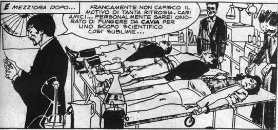 Dove sta, allora, il male, la paura, l’orrendo, il mostruoso? Tutto ciò viene incarnato, molto più che dagli zombi presenti in tutte le 94 pagine di questa prima storia, dal “cattivo” di turno…. che scopriremo essere tanto, tanto, tanto di più (e pure di questo, state sicuri, riparleremo): il Dott. Xabaras (anagramma di Abraxas, uno dei nomi del Diavolo), perfetto prototipo dello scienziato pazzo da Horror-B-Movie dell’epoca, il quale cerca (disperatamente?) di realizzare il siero della vita eterna… creando solo un virus che trasforma la gente in morti viventi (che alla Capcom abbiano copiato qualcosina quando hanno creato la saga di Biohazard – Resident Evil”? Magari Xabaras è il direttore capo della Umbrella Corporation!). E’ dagli scambi di battute tra il buono e il cattivo (in una scena degna di James Bond 007 – Missione Goldfinger, ma sin dall’inizio dell’albo le citazioni al buon agente dell’MI6 Britannico si sprecano) che apprendiamo, finalmente, dove si trova (e troverà) l’orrore in questo fumetto: mostri, fantasmi, paranormale, occulto, diavoli e angeli faranno solo da contorno, nelle storie dell’Indagatore, all’Incubo di cui egli stesso cercherà di dipanare le intricate matasse. Il vero orrore, il vero terrore, la Paura con la “P” maiuscola, di quelle che si vedono nei libri realizzati a mano da un monaco amanuense, tutte disegnate e arzigogolate, sta in qualcosa di molto più semplice, privo di “mistero” e di “paranormale” e lontano dal “mostro” e dallo “spirito”: l’animo umano!