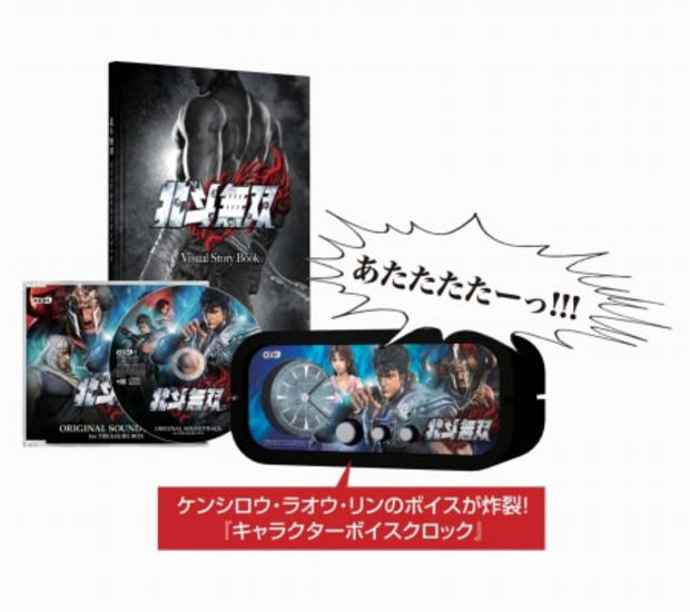 Un treasure box a mio parere abbastanza ricco: infatti chi lo comprerà, oltre ovviamente al videogioco, entrarà in possesso anche di una colonna sonora, un orologio e un visual storybook. Ma non è tutto: se infatti prenotate il gioco prima della sua uscita, riceverete in omaggio anche un simpatico contenitore per biglietti da visita (eh, rassegnatevi, in Giappone non potete stare senza). E non è ancora finita: le prime copie, pochissime e preziosissime, conterranno un codice che permetterà al giocatore di scaricare per Ken il classico costume blu del manga. Non è dato sapere se questo costume includerà anche tutti i cimeli che ken prende dai suoi avversari sconfitti, magari sarà possibile acquisirli durante il gioco… effettivamente come idea non mi sembra male.