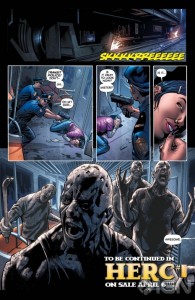 Il sito Ign propone quindi le prime pagine del nuovo Herc #1, dotato di un vasto arsenale proveniente dall’armeria di Ares, dio greco della guerra come la spada di Peleo, l’arco che uccise gli uccelli del lago Stinfalo e soprattutto lo scudo di Perseo con impregnato il potere terribile di Medusa della pietrificazione.