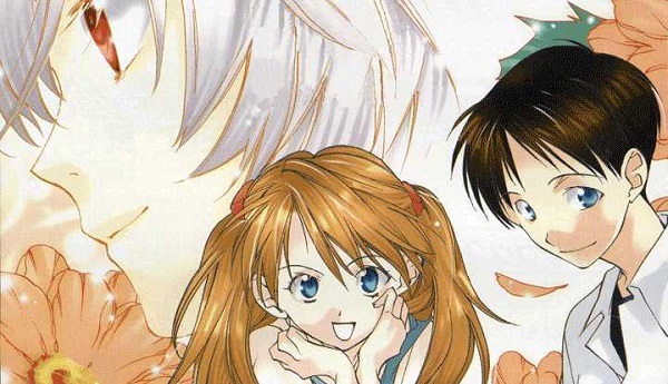 Asuka è abbastanza in forma, non ha perso il suo “baka Shinji” ma ha la lacrima e la parola “scusa” troppo facili, in fondo gli vuole bene a quel ragazzo; Rei invece dice più parole nel primo volume che in tutta la serie di Neon Genesis Evangelion, non sta mai zitta, una cosa insopportabile. Che poi, essendo Yui Ikari viva e vegeta, Rei è il clone di nessuno. Che ci sta a fare nella storia? A pilotare l’Eva 00, risponderebbe l’autore, perchè gli angeli ci sono: Shinji addirittura da aspirante capobranco sale di sua spontanea volontà sull’Eva 01 e affronta il primo angelo. Non è nemmeno chiaro cosa vogliano questi angeli, uguali a quelli dell’anime, che in un’epica battaglia finale attaccano il Central Dogma tutti insieme e vengono fermati dagli Eva pilotati da Shinji, Rei, Asuka, Toji e Kaworu… Kensuke no, non avrà MAI la possibilità di pilotarne uno. Stando a quello che Kaworu spiega (cioè, che in stile Evangelion, non spiega) sia Shinji che suo padre sono stati posti di fronte alla scelta di stabilire se il mondo merita di esistere, e lui è una specie di messaggero senza età di cui tutti si dimenticheranno quando la storia sarà finita. Giusto perchè è uno shojo e nessuno deve morire, altrimenti se ne và alla malora il lieto fine. Gli ultimi due volumi del manga contengono storie brevi dei coniugi Ikari, il giovane e ribelle Gendo si ritrova alle prese con il primo Kaworu e intuisce che dovrà proteggere il mondo, un giorno; un capitolo su Misato e Kaji in cui non succede niente seguito da uno con Rei e Ritsuko, dove si rendono conto che finiranno zitelle. Nell’ultimo volumino invece c’è una storia di Toji e Hikari, e chiudono le danze due adulti Shinji e Asuka. Poche pagine, dopotutto, ma avevo l’impressione di star leggendo la Divina Commedia (per lunghezza, intendiamoci). Si percepisce una strana sensazione di vuoto imperante mentre si legge questo manga, forse perchè gli avvenimenti, i modi in cui si pongono e si sviluppano i personaggi, e il tipo di situazioni che vengono presentate non sono per niente interessanti, vorrebbero trasmetterci una sorta di tranquilla vita quotidiana che questi personaggi indubbiamente meritano, visto quello che hanno dovuto passare, ma con un ovvio pessimo risultato. E sembra tutto così ridicolo.