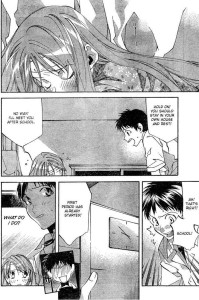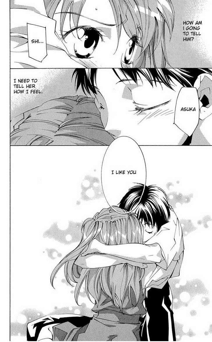 Dicevo. Neppure nello shojo più caramelloso (e io ne ho letti di shojo caramellosi) ho mai visto tante platoniche effusioni d’amore. Per fortuna che Kaworu non ha le sue solite tendenze, la cosa sarebbe stata ancor più dura da digerire… e quindi si va avanti tra lezioni di cucina, picnic, chiaccherate tra ragazze e nuovi modi di acconciarsi i capelli (sacrilegio) fino al momento in cui, in modo alquanto scontato Shinji e Asuka finiranno per dichiararsi il loro amore… no, non sto facendo pesare questo fatto perchè sono da sempre un fan della tsundere rosso-vestita (piangi Rei, piangi, che in questo manga puoi!). Del disegno di Fumino Hayashi non ve ne parlo neppure perchè sul nostro blog determinati termini non si possono usare, posso solo consolarmi pensando che almeno ha potuto dar da mangiare al suo gatto grazie allo stipendio che la Kadokawa gli versava. Ovviamente ho perso di vista quest’autore, e non ho nessuna intenzione di rivisionare un suo lavoro. Ma dopotutto non gliene faccio una colpa (ai redattori della Kadokawa si), è abbastanza comune che vengano scaricati nel mercato prodotti scadenti solo per accontentare l’insaziabile fame di appassionati che “ne vogliono di più“, e Evangelion è da sempre uno di quei marchi bersagliati da scempi del genere… non fatemici pensare, va.