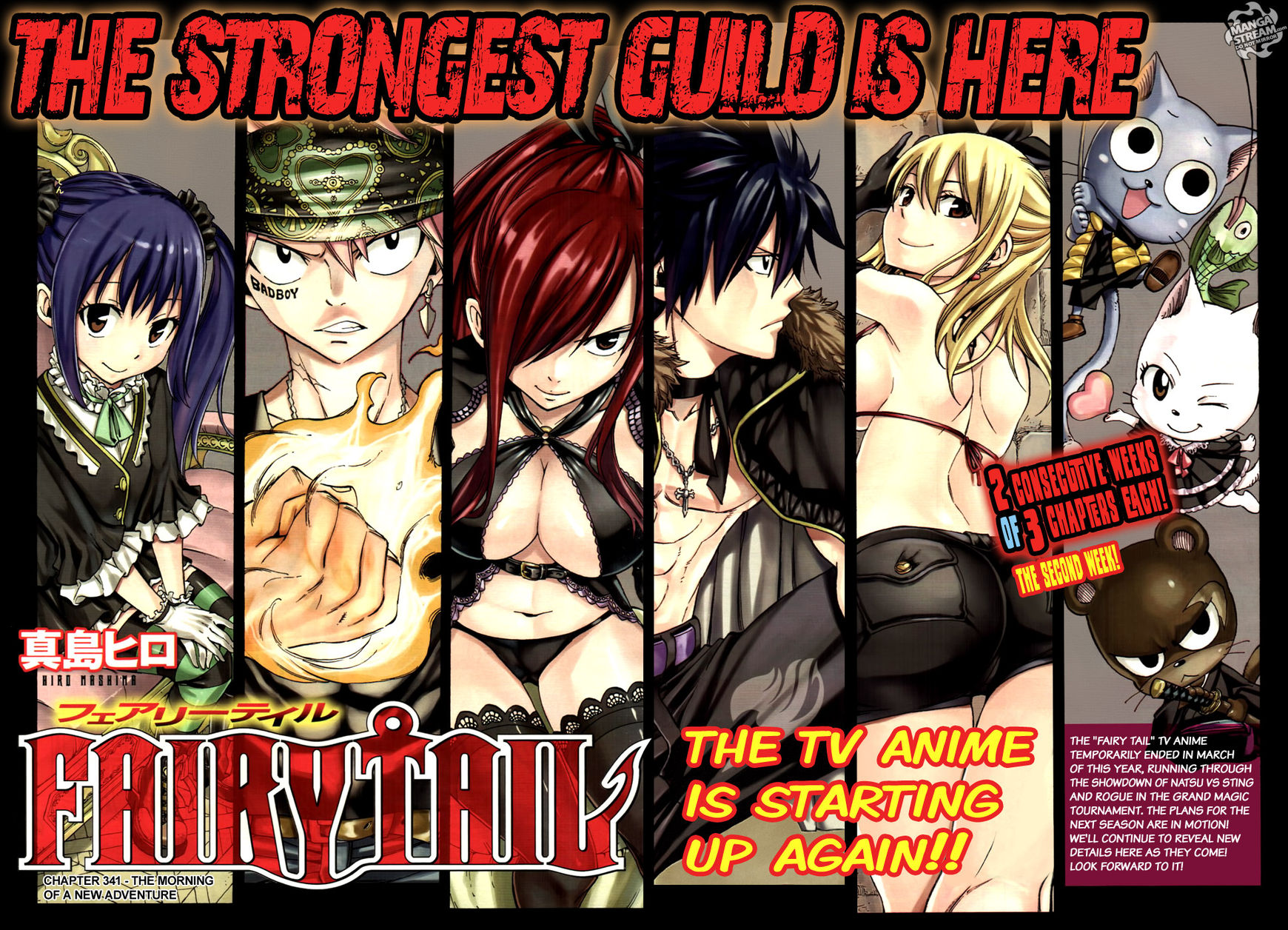 Fairy Tail 341 – L’alba di uno nuova avventura. Iniziamo col dire che molte persone avranno letto questo capitolo con molta calma… soprattutto perché saranno rimaste quella buona mezz’ora a fissare la pagina iniziale a colori! Dopo la conclusione del Torneo Tre Maghi (come dite? Ah, quello era in Harry Potter?) e l’apparizione dei Draghi (ed era pure ora), a seguire una serie di capitoli di passaggio, in cui la Gilda più famosa riacquista i vecchi fasti e nei quali viene “dichiarata” una guerra silenziosa tra Fairy Tail e Zefer a opera del Primo Master della Gilda stessa, eccoci finalmente con un capitolo…. di stasi! Scherzi a parte, devo dire che ho trovato interessante una “storia” incentrata solo sulle ragazze (tette!) di Fairy Tail e su nuovi, probabili futuri membri (tette!): bisogna pur sempre ricordare che Lucy (tette!) è, a quanto pare, l’ultimo Mastro di Chiavi (come dite? Quello era Ghostbuster?) esistente e che tra le donne militano alcuni tra i personaggi più forti di tutta l’opera, Elsa e Mira (TETTE!) e una Dragon Slayer (tette?). Ed ho trovato molto interessante l’autocitazione fatta da Mashima a “Rave” altra sua opera che, se posso dirvelo in confidenza, ho acquistato un paio di anni fa in blocco e che trovo molto interessante. Tralasciando i vari siparietti comici, possiamo osservare che, in linea di massima, le cose a Fairy Tail continuano ad essere sempre le stesse: gli atteggiamenti dei personaggi rimasti imprigionati 7 anni dalla magia del primo, la relazione di amicizia complicata tra Natsu e Gray (e il loro rapporto con Elsa, che viene sottolineato magistralmente nel piccolo siparietto in cui i due “litiganti” la colpiscono contemporaneamente!) nonché i vari “legami” più o meno forti tra i vari membri della Gilda (in primis le donne, appunto, che mostrano di essere molto più affiatate tra loro di quanto si potesse immaginare). Sebbene il capitolo sia “leggero” si conclude con una serie di vignette che mi hanno fatto da subito pensare: se Mashima tira in ballo, a questo punto, uno dei quattro maghi più potenti del mondo, probabilmente il manga sta entrando in una fase che, se non fosse proprio quella della saga conclusiva, potrebbe benissimo rappresentarne un antefatto. E la cosa viene, se mi permettete, confermata dagli altri due capitoli a seguire.