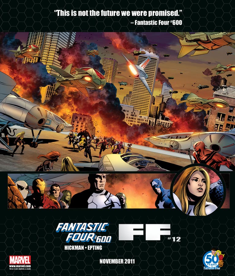 Finora sono stati rilasciati 4 Teaser che pubblicizzano l’evento e che mostrano personaggi molto importanti nella continuity degli FF come Galactus, raffigurato sulla luna,Freccia Nera con alle spalle una misteriosa figura,Annihilus con esercito al seguito e la famigliola al completo in compagnia dei vendicatori in un clima di guerra che non fa presagire nulla di buono.