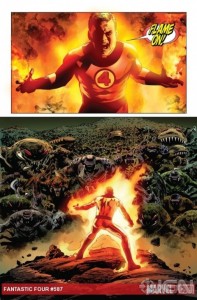 Anche se la saga ha visto il suo apice più alto, Fantastic Four #588 di Febbraio dovrebbe in qualche modo, raccogliere i pezzi della vicenda, mostrare l’inevitabile epilogo del gruppo in maniera tale che a Marzo, in edicola cominci un nuovo ciclo vitale.