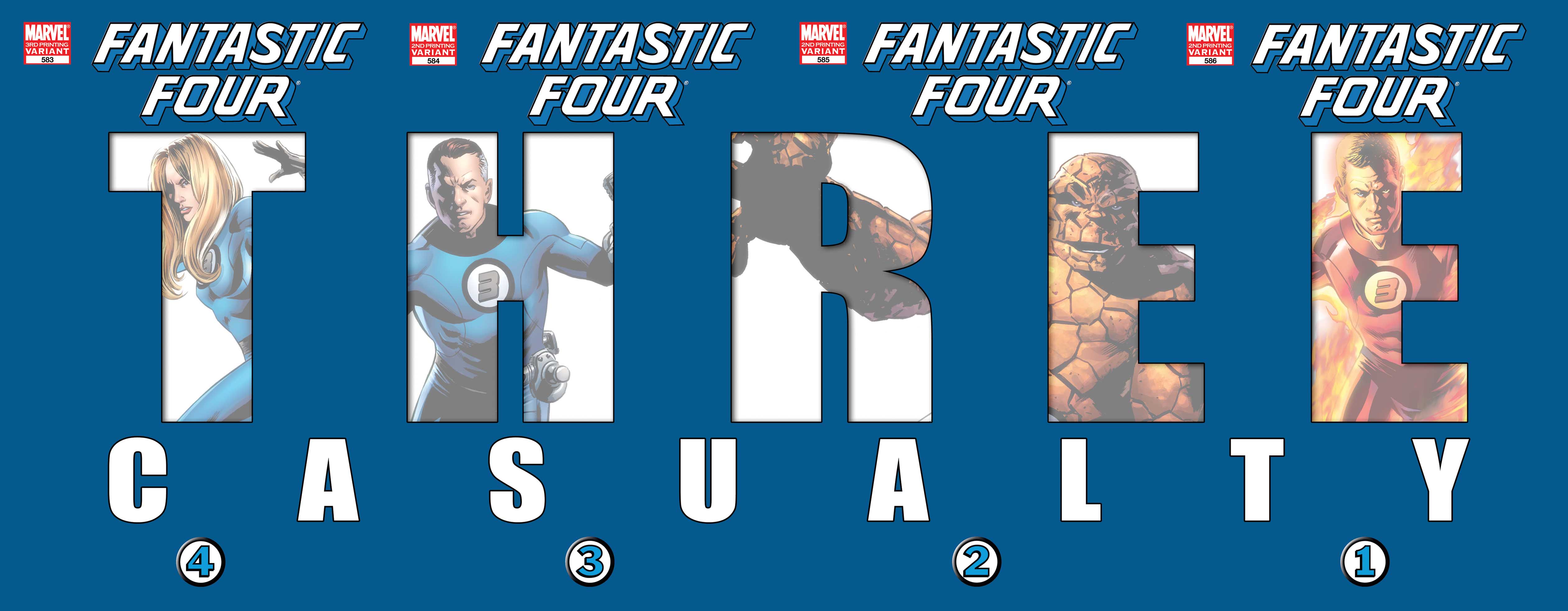 Su Fantastic Four #585 (di novembre 2010) invece cominciano a tirarsi i fili della trama: tutti i partecipanti della prima “soap-opera” con i supereroi si separano per missioni ed incarichi differenti, uno di loro (la gente lo sa) non farà più ritorno a casa perciò gli animi cominciano a scaldarsi.