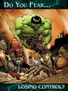 Come da immagini corredate, la paura di Ciclope di diventare come e peggio di Magneto, la paura di Hulk/Bruce di perdere completamente il controllo e massacrare tutti gli altri supereroi, la paura di Spider-Man del domani, delle guerre e dell’impossibilità di reagire di fronte a questi avvenimenti.