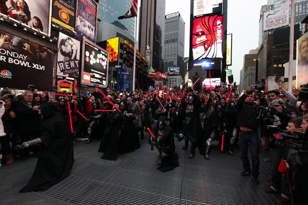 Gioco atteso da tutti i fan della saga che, ad ogni nuovo capitolo dedicato all’universo di Guerre Stellari, iniziano a contare i giorni che mancano alla data di uscita. E alcuni folli, hanno deciso di festeggiare l’uscita di questo incredibile gioco con questo flash mob spettacolare. Dal punto di vista del cosplay nulla da dire, i costumi sono fantastici, il capo dei Sith, che credo abbia un nome, ma io sinceramente non sono riuscito a trovarlo sul web, è splendido. Trucco e vestiti sono fantastici. Gli effetti di luce delle spade laser sono unici e durante la notte a Times Square paiono risplendere ancor di più. Sith e Jedi sono fighissimi, quando escono dal nulla e la folla non sa come comportarsi ho provato un senso di invidia unico. Avrei voluto essere lì e scattare migliaia di foto in quei due minuti di esibizione. Il montaggio del video è molto ben realizzato e la “battaglia” tra le due forze in campo vedrà lo spettatore compiere una scelta!