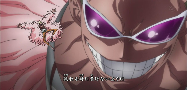 Doflamingo è personaggio per cui Oda ha avuto una cura particolare. Nonostante sia stato introdotto nella storia piuttosto presto (capitolo 233) è tutt’ora l’unico membro della Flotta di cui non conosciamo ancora con esattezza le caratteristiche dei suoi poteri, nonostante questi ci siano stati mostrati in più di un’occasione in ogni sua apparizione (Marijoa, Jaya, Marineford e anche ora a Dress Rosa). Doflamingo ha anche mantenuto per molto a lungo il record della taglia più alta nel mondo di One Piece (tra quelle che noi conoscevamo ovviamente). Un personaggio quindi che Oda ha voluto caratterizzare fin da subito con una certa aura di mistero, ambiguità, eccentricità e, soprattutto, pericolosità. È quest’ultima che andremo ad analizzare oggi …
