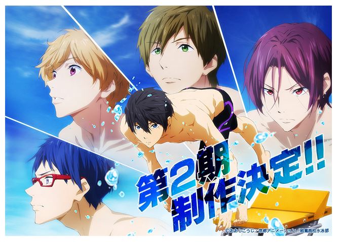 Domenica della scorsa settimana si è svolto un evento speciale legato alla serie d’animazione Free! della Kyoto Animation. Nel corso dell’evento, attraverso un poster promozionale, è stata svelata l’effettiva produzione di una seconda serie d’animazione dell’anime. L’ultimo episodio della prima serie di Free! si era concluso con la scritta “see you next summer” quando tutti gli undici episodi precedenti si erano conclusi con la frase “see you next water time”. Alla scritta non era seguito nessun annuncio ufficiale della Kyoto Animation circa la produzione di una seconda serie, almeno fino a questo momento.