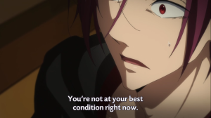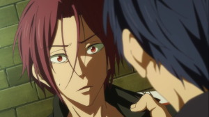 A una puntata dalla fine mi sento quasi disposto a confermare il fatto che Rei si porta a casa il trofeo di miglior personaggio della serie: lo metterà sulla sua bacheca, insieme a tutti quelli che ha vinto nelle competizioni di atletica. Con le sue azioni mette fine una volta per tutte al tira e molla iniziato dai due egocentrici personaggi che hanno dominato la vicenda oscurando tutto il resto (e non è certo finita qui, il finale sarà “il loro”), rompendo gli equilibri e gli indugi e spingendo una di queste in particolare ad affrontare una volta e per tutte quella questione che rimanda dal primo episodio. Sto parlando di Rin (ti odio, ti ricordi di tua sorella solo quando ti serve!) Oh, quanto ho riso nel momento in cui ha rivelato di aver scaricato sugli altri il peso della sua inadeguatezza (per essere il peggior atleta della sua scuola in Australia). Oh, quanto ho riso nel momento in cui ha mostrato di essere stato capace soltanto di pavoneggiarsi, fino ad essere mosso dagli attacchi di Rei a sentirsi in dovere di giustificarsi in un secondo momento, spiegarsi.. e farlo con una persona che non era interessata alle sue motivazioni. Sul volto di Rei in quel momento si leggeva la tipica espressione “cosa vuole da me questo qui?” Oh, quanto ho riso quando il capitano del club di nuoto ha escluso lo squalo dalla staffetta, ridimensionando in modo crudele ma efficace la principessina su cui adesso pare essere crollato il mondo addosso. Chi è causa del suo mal pianga se stesso: sarebbe bastato atteggiarsi in modo un tantino più maturo e non ci sarebbero stati problemi, invece, finisce per rimanere intrappolato nel ruolo del solito egocentrico che si fa forte dell’essere odiato/ignorato dagli altri, scavandosi la fossa da solo. Oh, quanto rido.