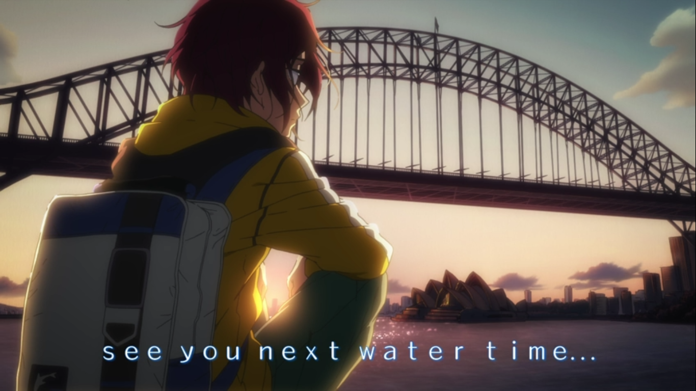 Ho temuto per un attimo che Rei e Rin si picchiassero: perdonatemi, non avrei retto una scena di violenza, le medicazioni e le attenzioni che ne sarebbero seguiti; senza considerare neppure i problemi che sarebbero stati causati ai due club di nuoto (Samezuka e Iwatobi) per la squalifica di due dei loro membri. I regolamenti sportivi per gli istituti scolastici sono spesso molto severi, e atti di violenza e delinquenza non vengono tollerati, e puniti con sanzioni di questo genere. Uno dei temi classici degli spokon, ma a un episodio dalla fine è anche sensato che le cose non vadano a complicarsi ulteriormente, anche perchè è stato il personaggio di Rei a non raccogliere la provocazione che Rin in certi momenti sembrava sventagliare: come se volesse picchiarlo (perchè dice cose scomode), ma non volesse essere il primo ad attaccare. Più o meno, in uno dei confronti centrali di tutta questa vicenda, è stata questa la sensazione che ho avuto, e quindi capirete perchè il quattrocchi ha acquistato un numero di punti veramente elevato da parte del sottoscritto. La seconda parte dell’episodio è quella che definirei la classica “quiete prima della tempesta“, il gruppo si appresta a lanciarsi nella sfida delle regionali, per puntare sempre più in alto: quasi volessero già dirci che, Rin o non Rin, i quattro dell’Iwatobi sono già una squadra solida e coesa in grado di affrontare qualunque sfida.