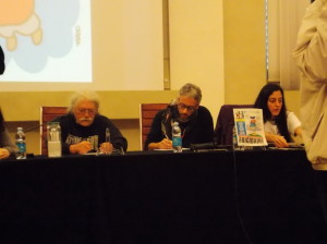 Il mio primo giorno alla Fiera di quest’anno (sabato 2 Novembre) si è aperto proprio con la partecipazioni ad una di queste conferenze, organizzata da Cesvot (il Centro Servizi Volontariato della Toscana) alla quale hanno preso parte due realtà tanto distanti nella ideologia di base, quanto vicine (in maniera sorprendente) nello spirito che le guida. La prima di queste, “Frigidaire” credo (anzi, spero) non abbia bisogno di presentazioni: la “realtà sociale” (credo che sia una buona definizione) voluta da Vincenzo Sparagna che ha fatto della satira e della comunicazione “popolare d’èlite” il suo emblema, si occupa, ormai da tempo, non solo di “smascherare” le brutture del nostro Paese in maniera ironica e coscienziosa, ma ha anche intrapreso, attraverso gli autori che collaborano alla sua realizzazione, una serie di campagne nel sociale basandosi sull’idea che il fumetto, lungi dall’essere solamente un “media di intrattenimento”, risulta un’efficace strumento di comunicazione “seria” e capace di scuotere, in una sola vignetta, le coscienze delle persone.