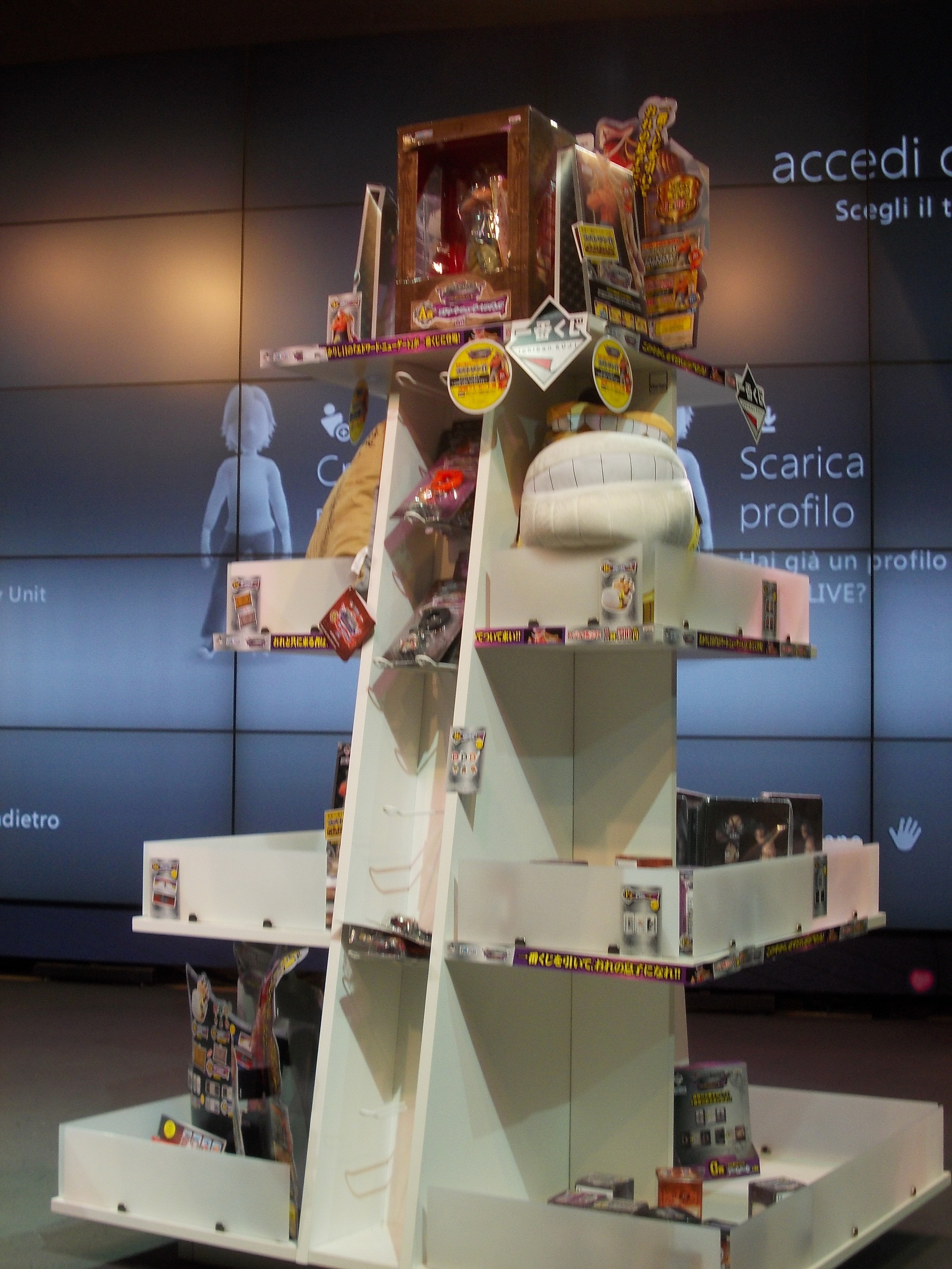 C’era in anteprima anche la demo di Naruto Shippuuden Ultimate Ninja Storm 3 nella quale si potevano fare scontri usando Naruto, Sasuke, Hanzo, Mifune e il 4° Hokage. È cambiato poco rispetto al Generation, a dir la verità dalla demo non si notava alcun cambiamento ma le ultime notizie confermano che ci saranno parti di stage distruttibili e qualche piccola modifica nel gameplay. Sempre nello stand della Namco Bandai si poteva giocare a Tekken Tag Tournament 2 sul cabinato tipico da sala giochi, molto divertente ed accessoriato da sogno per un amante dei picchiaduro. Namco Bandai ha anche organizzato il primo Ichiban Kuji italiano, ovvero una lotteria dedicata a One Piece: si comprava un biglietto da 10€ col quale si vinceva il corrispettivo di un premio (ce n’erano di 6 tipologie) che andavano da piccoli gadget ad un grosso pupazzo della Moby Dick di Barbabianca fino al primo premio che era per l’appunto una figure da 30 cm di Barbabianca, vinta dal primo ragazzo che ha pescato un biglietto e che era di fianco a me nella fila, quando si dice fortuna.