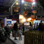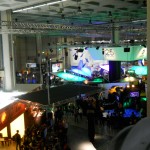 Il livello sopraelevato dove inizialmente ci troviamo si butta a balconata sull’immenso livello espositivo dal quale compaiono fin da subito i pezzi grossi della fiera: Playstation, Nintendo e più in là X-Box e Activision.