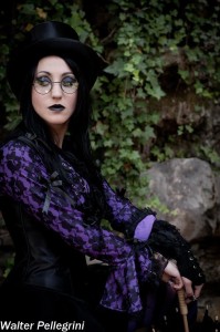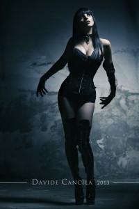 G: Il set realizzato da Danilo Olivieri a Lucca 2012, che ritrae me e Lord Ashram in veste di vampiro e vittima… è un tripudio di pizzi, merletti, balze, corsetti, gioielli,