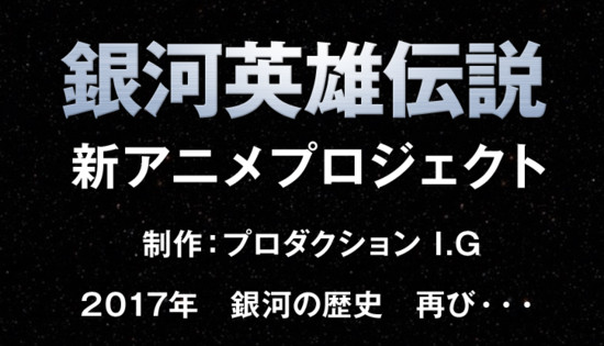 Giovedì di questa settimana, la Production I.G ha aperto un nuovo sito web per annunciare ufficialmente che produrrà una nuova serie d’animazione basata sulla serie di romanzi di Ginga eiyū densetsu (noto anche col titolo internazionale Legend of Galactic Heroes) di Yoshiki Tanaka. L’anime farà il suo debutto nel 2017 e la tagline sul sito ufficiale del progetto recita “Nel 2017, la storia della galassia, ancora una volta sarà….”
