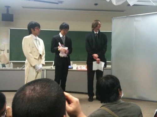 Il Giappone ci ha sempre abituato a stranezze e stravaganze, ma tutto ha un limite, infatti tra le leggi giapponesi NON esiste quella che permette di sposarsi con chiunque. SAL però non si è certo arreso e con il suo DS alla mano (intendo la piccola consolle…chissà cosa avete pensato voi…) si è recato a Guam, una piccola isola del Pacifico dove è legalmente possibile maritarsi con “chiunque“. Il folle SAL però ci ha degnato di un’altro colpo di genio, infatti dopo il matrimonio con la sua girlfriend virtuale, ha organizzato un ricevimento, per poter condividere la sua felicità (?) con parenti e amici, al Tokyo Institute of Technology.