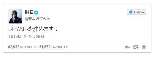 “La ragione per la quale Ike ha scritto quelle cose è che il lavoro del cantante di una band è particolarmente faticoso e la sua malattia si sta aggravando. Da adesso in poi gli SPYAIR faranno del loro meglio per permettere a Ike di recuperare, e successivamente vi faremo avere nuove informazioni su questo stesso sito.”