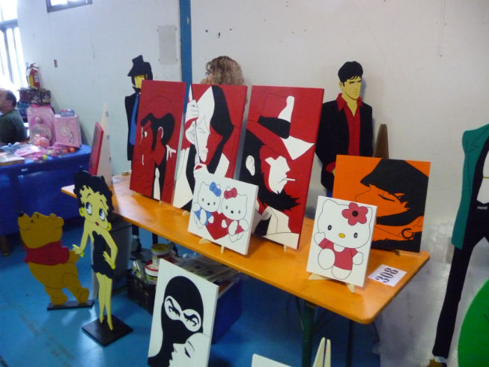 Molto belle le opere di un autore di zona che ha disegnato Lupin in modo incredibile. Dovreste aver visto dal vero questi quadri: la resa era magnifica, il prezzo di 30 euro l’uno oppure 80 il tris.