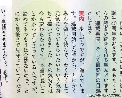 Quando le è stato chiesto quando riprenderà la pubblicazione del manga, e quando la fine del manga sarà effettivamente pubblicata, Suzue Miuchi ha risposto: