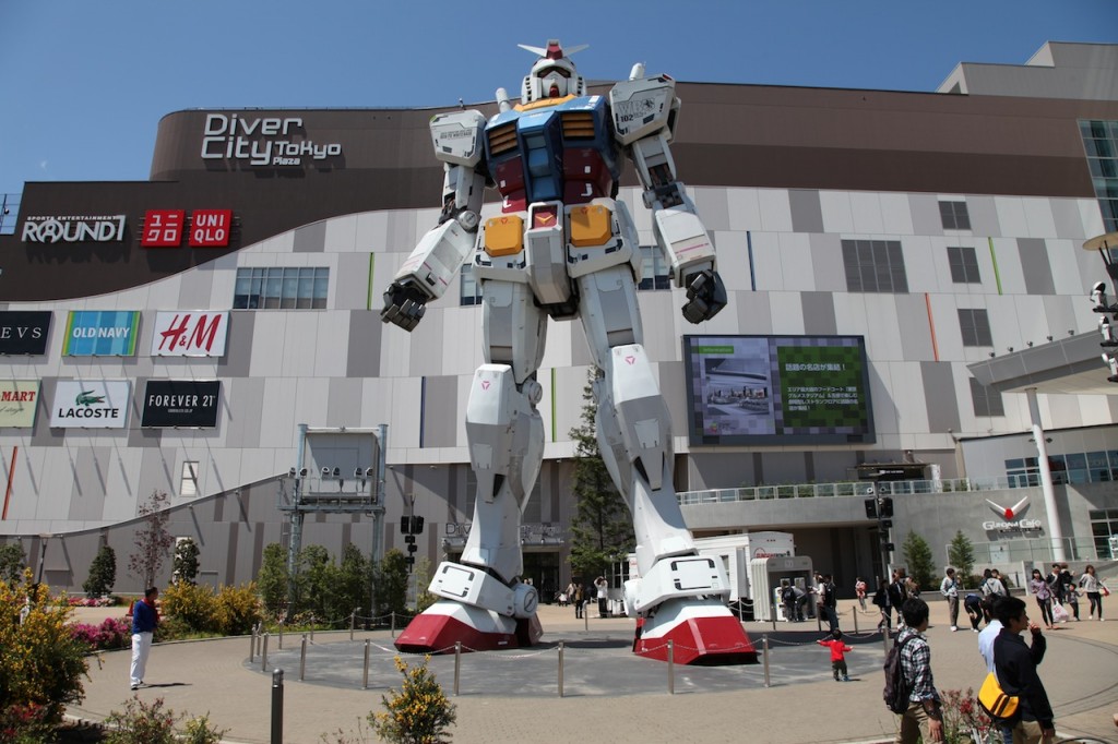 La statua di Gundam è stata costruita in occasione del trentesimo anniversario della serie. Il progetto è stato annunciato a Marzo del 2009 ed è stato concluso all’inizio di Giugno dello stesso anno. Inizialmente la statua a grandezza naturale era stata collocata nel parco di Shiokaze sull’isola di Odaiba. Successivamente è stata ricostruita nella città di Shizuoka vicino alla stazione di Higashishizuoka a Luglio del 2010. Infine, a Gennaio del 2011 è stata spostata definitivamente al DiverCity center nuovamente sull’isola di Odaiba.