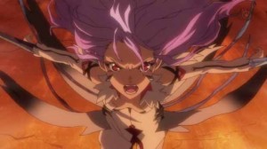 Commento: Questa puntata è stata davvero memorabile, non tanto per la trama che è risultata piuttosto lineare e senza troppe nuove rilevazioni, quanto per la versione Berserk di Inori, stupenda… o almeno a me è piaciuta davvero tantissimo, credo che questa trasformazione faccia risaltare ancora di più la bellezza del personaggio, e ammetto di esserne rimasto piacevolmente colpito. Devo dire che, però, in questa puntata, è stata tirata fuori una strana informazione, quella di un gruppo di prescelti che formano una società segreta, che, devo dire, mi ha sorpreso un po’. Personalmente non mi ha catturato molto l’idea, perché la trovo un po’ troppo banale, ma bisognerà vedere se, e come , sarà ampliata dagli sceneggiatori, anche se spero sia solo stata lanciata e non venga poi troppo rielaborata nei successivi episodi. E voi cosa ne pensate? Vi piace come si stà sviluppando la trama? Ci stiamo avvicinando verso la conclusione, come credete che progredirà la storia? E cosa vorrà fare Shu?