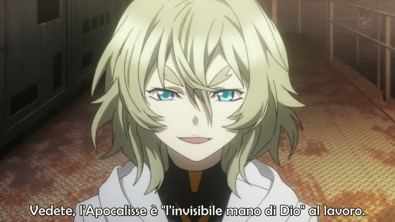 Riassunto: L’episodio di oggi è molto particolare, si divide in due fasi temporali diverse, all’inizio vi è il presente, dove Gai annuncia al mondo che arriverà l’Apocalisse e i Leukocyte distruggeranno la Terra il 25 Dicembre. Shu e gl’altri si trovano in una nave al largo delle coste e iniziano a prepararsi per lo scontro, ormai inevitabile dopo la sua dichiarazione di guerra, con Gai. Il resto dell’episodio consiste in un lunghissimo flash-back, dove ci vengono spiegate le origini della storia e dove alcune relazioni tra i protagonisti sono iniziate. Si scoprirà come tutto ha avuto inizio e qual è la vera storia di Shu, inoltre, verrà chiarito come Haruka Ouma sia diventata madre di Shu e quali erano i legami tra Shuichiro Keido e Kurosu Ouma, padre di Shu.