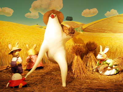 La proiezione del cortometraggio proseguirà fino al 14 marzo 2011. A essa è associato un allestimento realizzato all’interno del Museo Ghibli e facente parte della mostra speciale “The Ghibli Forest Short Films”. Quest’area del museo è stata allestita con un diorama raffigurante la scena in cui la Principessa Uovo e il Signor Impasto scappano attraverso il campo di grano. Sulla scena sono presenti anche veri strumenti da lavoro come la falce e veri chicchi di grano. L’area è inoltre decorata con pannelli che riportano commenti e illustrazioni a opera di Miyazaki. Per