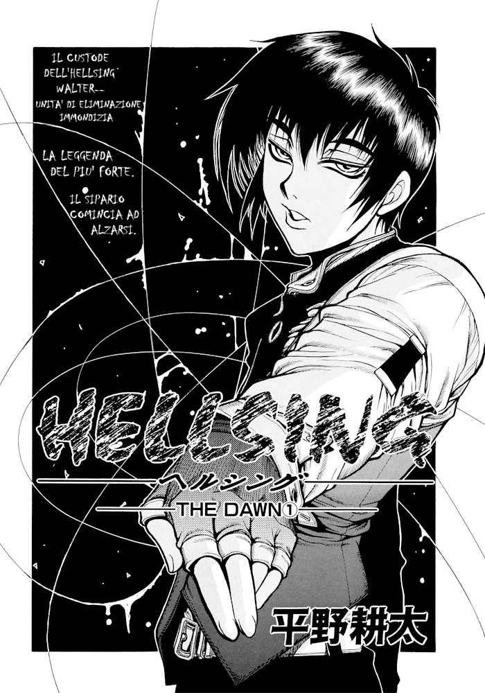 Un minimo di biografia e poi passiamo oltre: Kohta (o Kouta? o Kotha? o Kota?) Hirano comincia la sua carriera come assistente mangaka per poi sviluppare un suo tratto e dedicarsi a qualche storiella. I primi lavori da lui pubblicati sono prevalentemente hentai: Angel Dust, Coyote e Hi-Tension per fare qualche nome. Anzi, aggiungiamo un altro: The legend of the Vampire Hunter. Perché sottolineo questo one-shot hentai in particolare? Perché, assieme ad un altro paio di opere, è il precursore di Hellsing: la trama è quella del primo capitolo di Hellsing con la differenza che vi è una sequenza di violenza sessuale sulla poliziotta Seras … che verrà poi salvata dal vampiro Alucard. Contemporaneo a questo titolo vi è Crossfire; anche questo getterà le basi per Hellsing: infatti viene data forma a quattro personaggi che poi, nell’opera magna di Hirano, saranno protagonisti; ossia Padre Anderson, Padre Maxwell, sorella Yumie e padre\sorella Heinkel (tuttora il sesso di questo personaggio è incerto 😆 ).