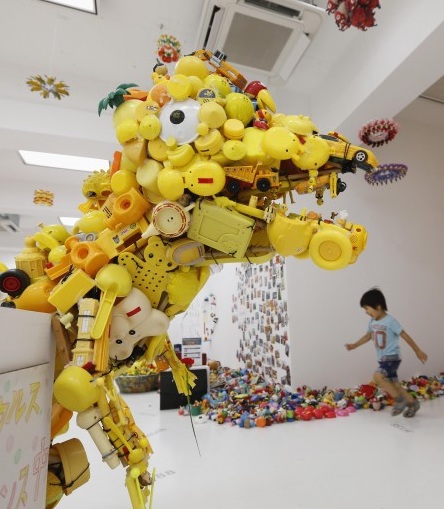 Così l’artista ha deciso di raccogliere qualcuno di questi particolari giocattoli e di riportarli sulla cresta dell’onda con una mostra che si è tenuta in questi giorni a Tokyo. La mostra, durata dal 15 luglio al 9 settembre, ha raggruppato migliaia di giocattoli vecchi e li ha esposti per donargli nuova linfa vitale.