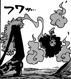 È la sua anima a fornirgli tutta l’energia di cui ha bisogno: tutto il resto è un pallido riflesso della sua precedente vita, che i poteri del frutto gli permettono ancora di fare, creandogli per esempio occhi, stomaco, apparato escretore, che in realtà non ci sono. È l’anima di Brook, come lui stesso ha capito in questi due anni, che gli permette di rialzarsi dopo ogni colpo, di riparare le sue ossa in un numero quasi illimitato di volte. Una nuova capacità che Brook ha acquisito è quella di poter separare ancora corpo e anima, creando una sua proiezione astrale molto simile a quella che riesce a fare Perona. I possibili sviluppi di questa tecnica sono molti: oltre al fatto che Brook potrebbe attraversare ogni superficie in quanto fantasma, potrebbe anche impossessarsi di altri cadaveri e manovrarli? Staremo a vedere …