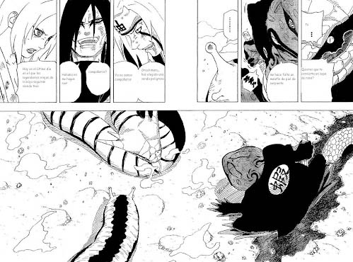 L’altro parallelo tra racconto e Manga è quello del salvataggio in extremis del quarto protagonista: si potrebbe forse assegnare quel ruolo a Naruto che col suo intervento destabilizza lo scontro risvegliando Tsunade dal torpore e permettendole di sconfiggere Orochimaru.