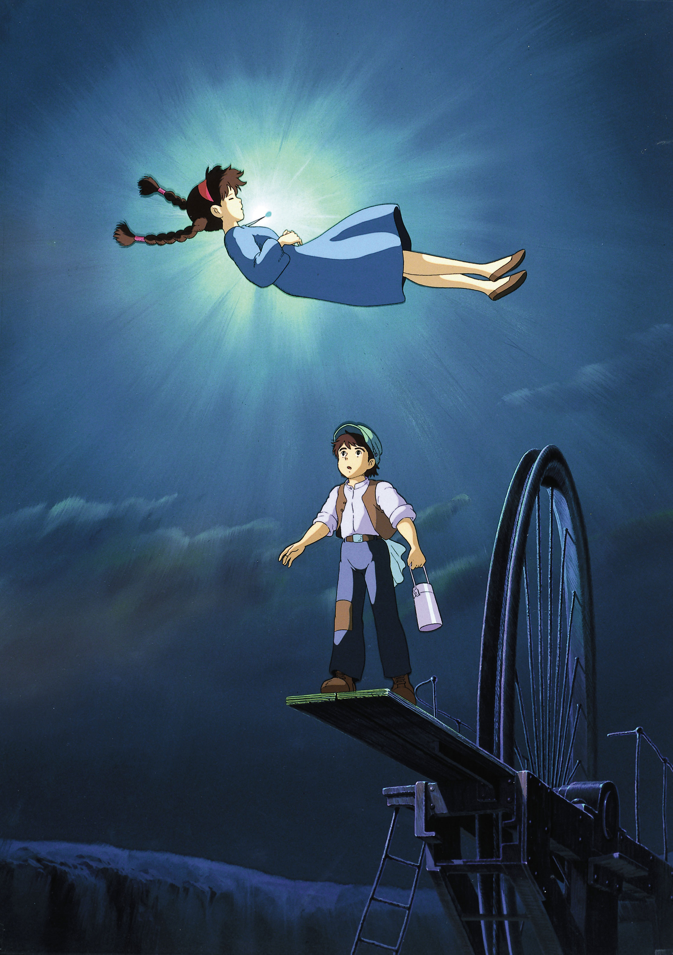 La giovane Sheeta è tenuta prigioniera dal cinico colonnello Muska a bordo di un’aeronave diretta verso la fortezza Tedis. Durante il volo, in una notte rischiarata dalla luna, l’aeronave viene attaccata da una banda di pirati guidata dall’intrepida Dola, che vuole impossessarsi del ciondolo che la ragazzina porta al collo. Questo ha un valore inestimabile: permette di vincere la forza di gravità e localizzare la leggendaria isola fluttuante di Laputa, dove – si racconta – sono custoditi immensi tesori e un potere inimmaginabile. Sheeta riesce però a fuggire, finendo tra le braccia di un giovane minatore di nome Pazu che, da quel momento, decide di proteggerla unendosi a lei nella ricerca dell’isola e dei suoi misteri.