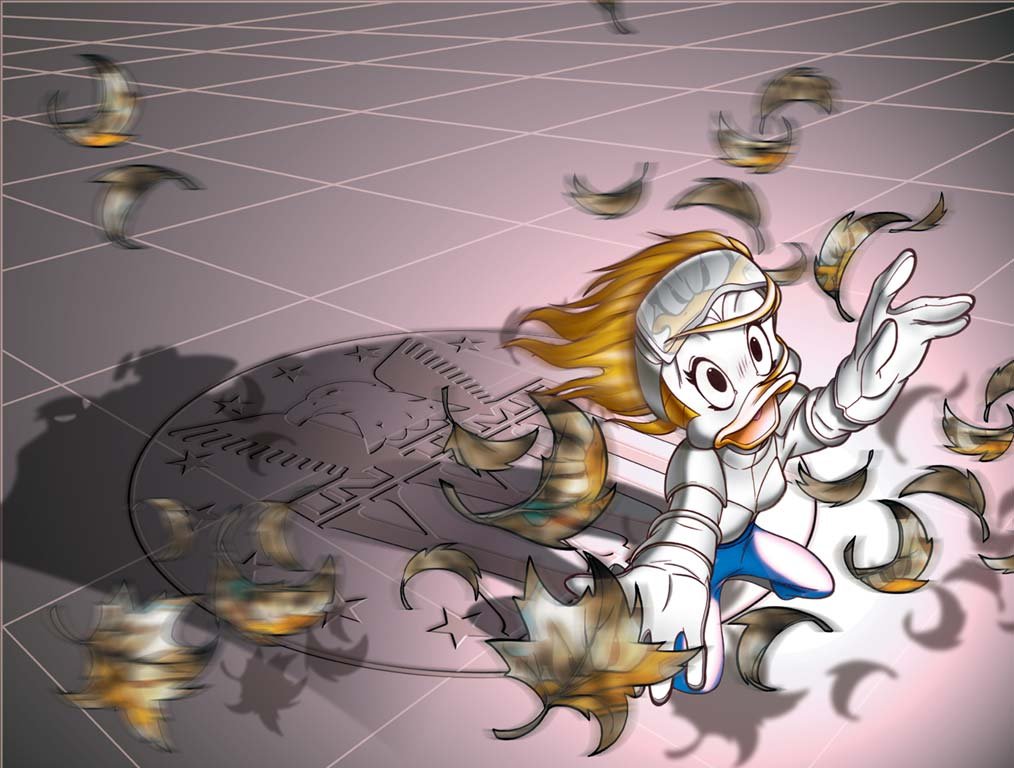 Ma il Paperinik che viene raccontato in quest’opera non pesta la Banda Bassotti o altri criminali dell’universo paperopolese, la minaccia proviene dallo spazio, da una razza bellicosa e conquistatrice, Evron con i suoi evroniani.