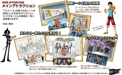 Sto parlando del “One piece memorial log in lagunasia“, un’attrazione che sarà fruibile al pubblico dal 20 marzo al 27 giugno 2010. Il parco che la ospiterà è il Laguna Gamagori marine resort complex, e devo dire che il progetto è ambizioso. Nelle presentazioni infatti l’attrazione viene descritta come la prima al mondo che permetterà davvero di rivivere le avventure di Rufy e della sua ciurma, cosa che la renderà completamente diversa da tutte le esposizioni a tema one piece tenutesi finora.
