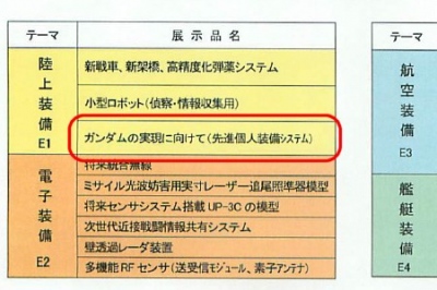Sbirciando nel sito del Ministero della Difesa giapponese, dove sono elencati tutti i progetti, vi è uno che attira la nostra attenzione, nel quale viene menzionato come “Creazione del Gundam” (vedi foto sotto).